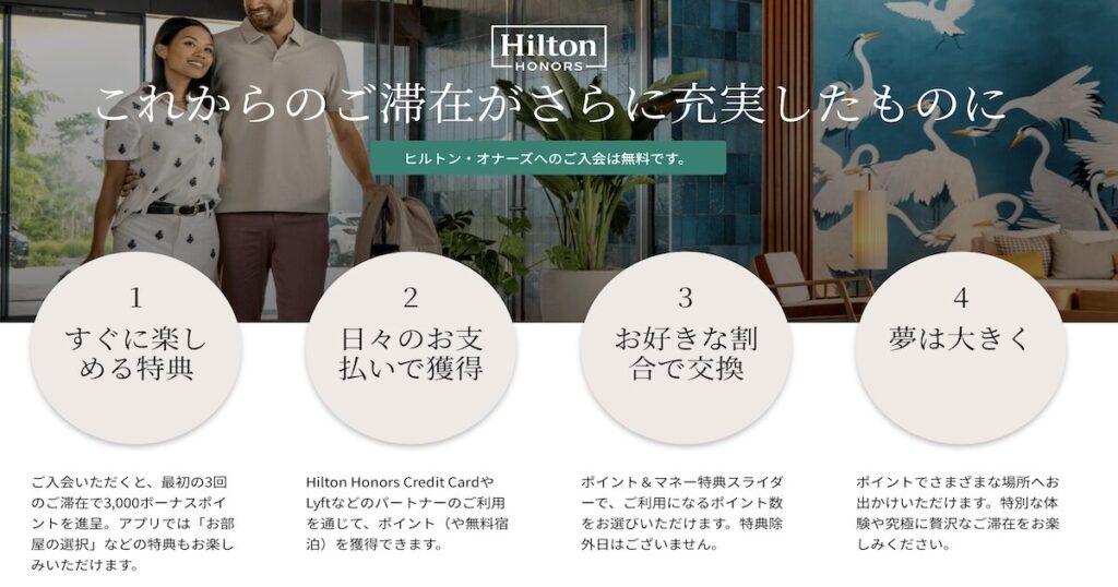 全国のヒルトン系列ホテルで利用できるため、「ヒルトン・オナーズ」への登録も検討してみてください。