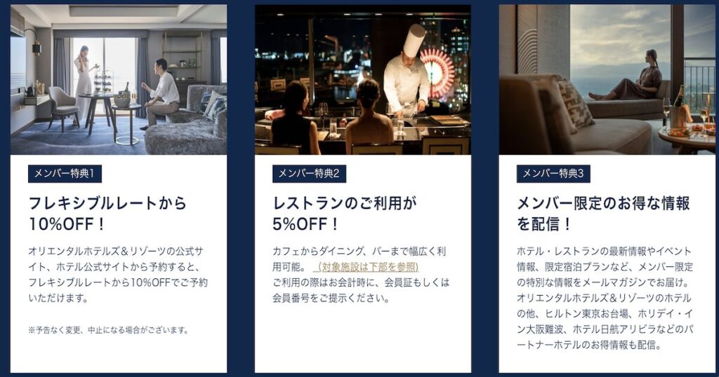また、オリエンタルホテル東京ベイには入会金・年会費無料のメンバーシッププログラム「CLUB ORIENTAL」があります。